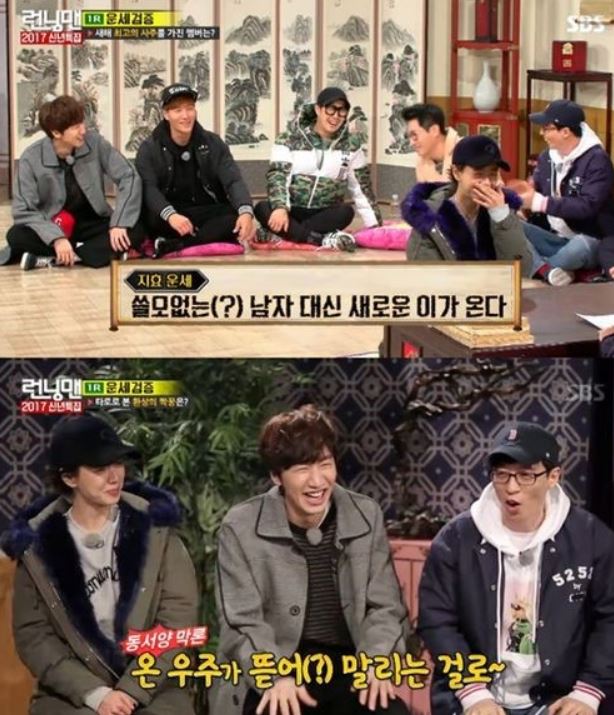 1일 방송된 SBS '런닝맨'에서는 2017년 새해를 맞아 멤버들의 신년 사주풀이와 궁합 등을 보는 시간을 가졌다. 이제는 어떠한 아이템을 던져줘도 멤버들끼리 알아서 케미를 만들어내는 7년 차 내공이 빛을 발하는 시간이었다.