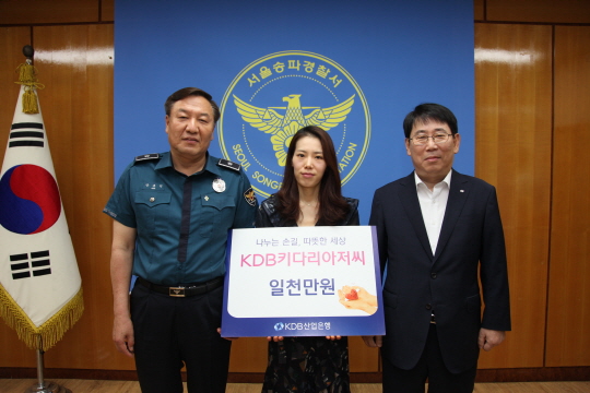KDB산업은행은 22일 서울 가락동 송파경찰서에서 'KDB 키다리 아저씨'의 14호 후원 대상으로 백혈병 치료중인 모범경찰을 선정하고 1000만원의 후원금을 전달했다고 밝혔다.