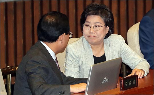 이혜훈 바른정당 대표가 1일 오후 열린 국회 본회의 정기국회 개회식에서 주호영 원내대표와 대화를 나누며 입을 굳게 다물고 있다. ⓒ데일리안 박항구 기자