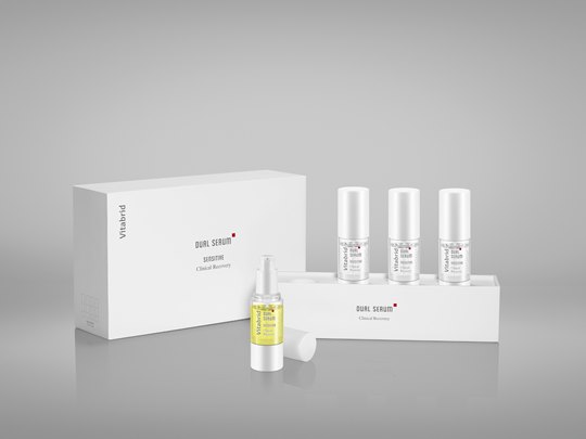 비타브리드 듀얼세럼은 피부 임상 전문 기관에서 피부주름개선, 탄력개선, 저자극 테스트 등을 완료해 효능과 안전성이 입증됐으며 민감한 피부에도 사용이 가능하다. 성분의 신선도를 유지하기 위해 비타브리드와 천연유래추출물이 용기 내에서 분리됐다가 사용시 바로 혼합될 수 있도록 특수 용기를 적용했다.