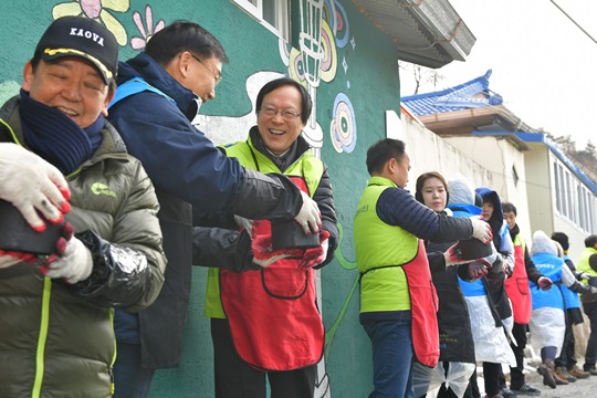 이날 연탄 나르기 봉사에는 김용환 NH농협금융지주 회장과 임직원, 서울지방보훈청 등 양 기관 임직원 30여명이 참여해 차량 진입 조차 어려운 도심 외곽에 거주하는 월남전 참전 국가유공자에게 연탄(500장)및 방한 위문품(겨울 이불, 내의 등)을 직접 전달하고 따뜻한 온정을 나눴다.