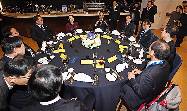 평창 동계올림픽 개막식에 참석한 북한 고위급 대표단을 위한 환영 만찬이 10일 강원도 강릉 스카이베이호텔에서 열렸다.