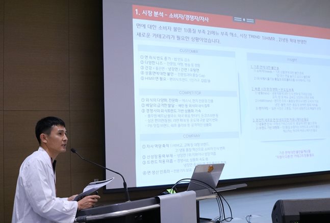 CJ제일제당 식품연구소 김선표 수석연구원이 HMR냉동면 시장에 대해 설명하고 있다.ⓒCJ제일제당