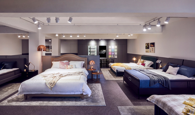 1, 2층은 퀸(QE), 라지킹(LK) 사이즈의 다양한 매트리스와 시몬스의 인기 더블 침대 프레임으로 구성돼 있으며, 3층은 가족 단위 고객들을 위해 자녀를 위한 수퍼싱글(SS) 매트리스와 패밀리 침대가 전시돼 체험해볼 수 있다.