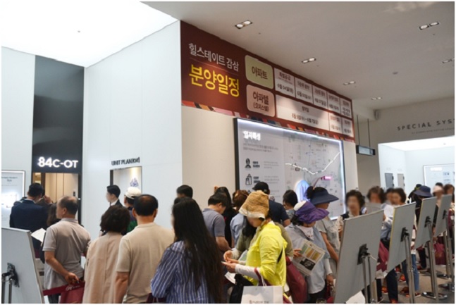 ‘힐스테이트 감삼’ 견본주택 개관 전부터 방문객이 몰리며 대기줄이 이어졌고, 유니트 관람까지도 1시간 이상 소요됐다.ⓒ현대엔지니어링