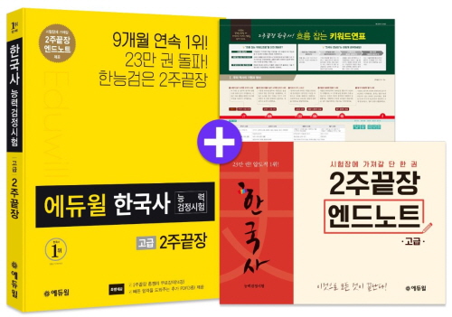 에듀윌 한능검 교재는 검증된 기본 구성에 더해 수험생들의 단기 학습 완성을 위한 '2주끝장 엔드노트'를 제공한다. 본 책의 72가지 주제를 압축하고 핵심 키워드를 반복 및 강조한 <시대편>, 시대별 주요 왕과 주요 인물, 주요 문화재 등을 한눈에 확인할 수 있도록 테마별로 정리한 <테마편>으로 구성됐다.