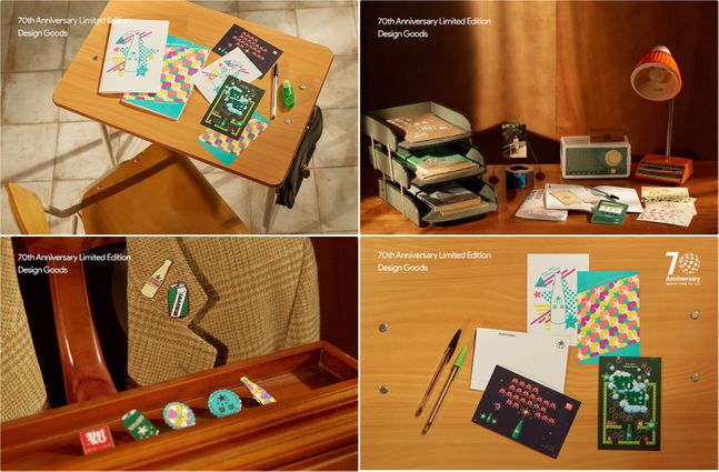 한정판 굿즈는 문구세트, 컵, 배지, 마그넷오프너, 미니어처로 제작되어 칠성사이다 70주년 기념 온라인 홍보관 ‘리그린 빌리지’에서 판매된다.