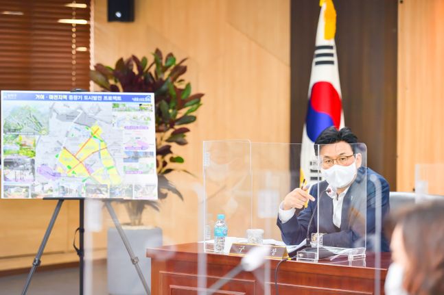 박성수 송파구청장이 지난해 11월 30일 거마지역 중장기 도시발전 프로젝트 보고회에 참석했다. ⓒ송파구청