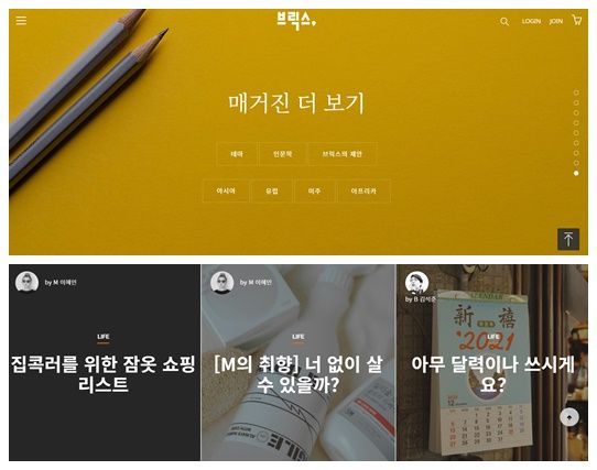 '브릭스'는 여행 웹 매거진으로 서른 명의 여행 작가들이 여행 정보를 제공한다. 경험을 토대로한 여행 투어, 사진전 등도 진행한다. 특징은 여행을 좋아하는 사람이라면 '브릭스' 여행 작가에 언제든지 지원이 가능하다.