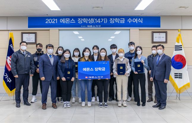 에몬스는 지난달 25일 인천 고잔동 소재 본사에서 ‘2021 에몬스 장학생(14기)’ 장학금 및 장학증서 수여식을 개최했다고 2일 밝혔다.