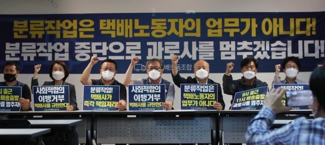 노조는 사회적 합의 이후에도 대다수의 택배기사들이 여전히 분류 작업을 하고 있다고 강조했다.