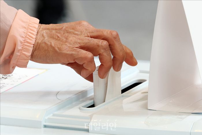 21대 대선 본투표가 3일 시작됐다. 유권자가 투표소에서 투표를 하고 있다. ⓒ데일리안 홍금표 기자