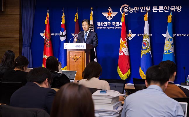 임찬우 국무조정실 주한미군기지 이전지원단장이 11일 오후 서울 용산구 국방부 브리핑룸에서 주한미군기지 반환 관련 정부합동브리핑을 하고 있다. 정부는 평택 캠프 험프리스에서 미국과 제200차 SOFA합동위를 개최해 장기간 반환이 지연되어온 원주, 부평, 동두천 지역 4개 폐쇄 미군기지를 즉시 반환받고 용산기지 반환 협의 절차도 개시한다고 밝혔다.